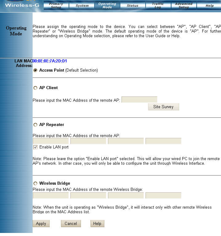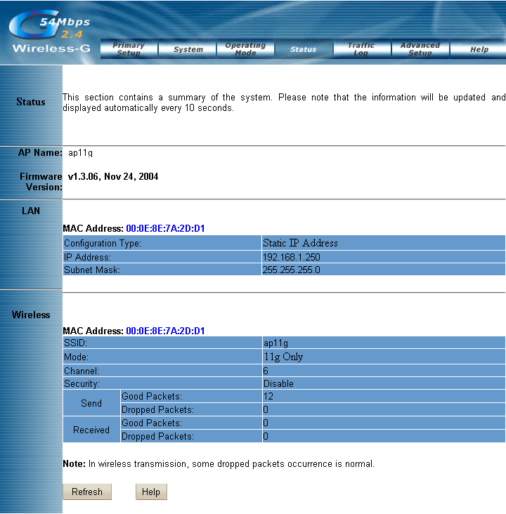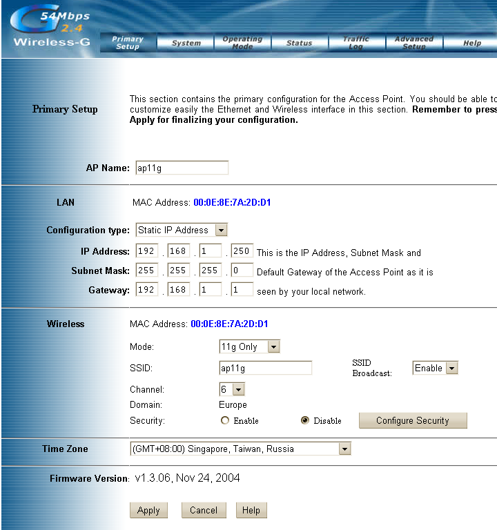 Точка доступа TEW-410APB+ настраивается через WEB-интерфейс. Ниже приведены скриншоты стандартных настроек.