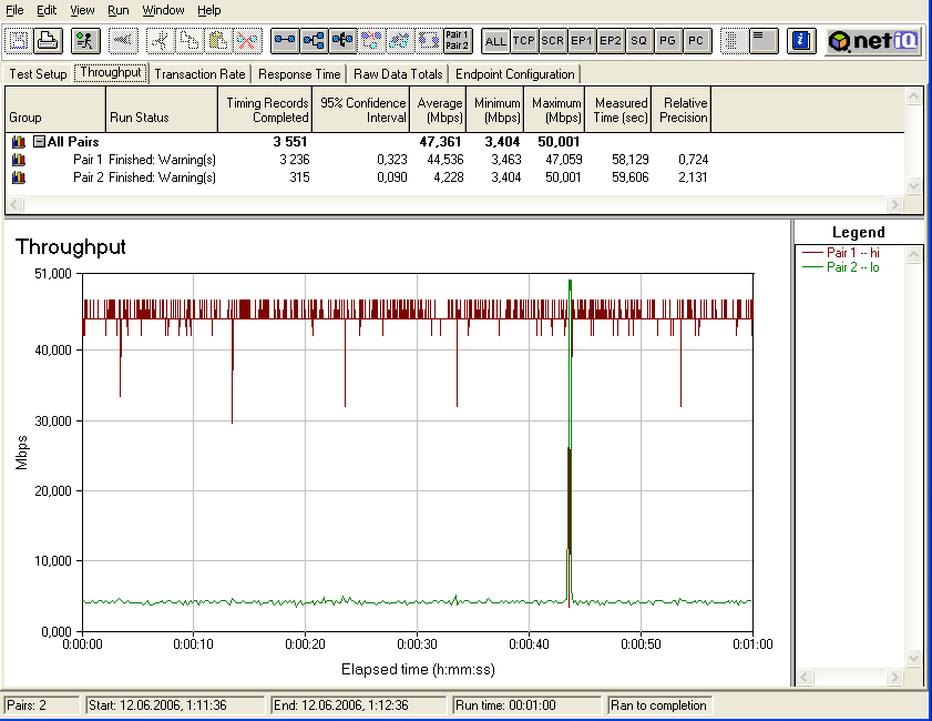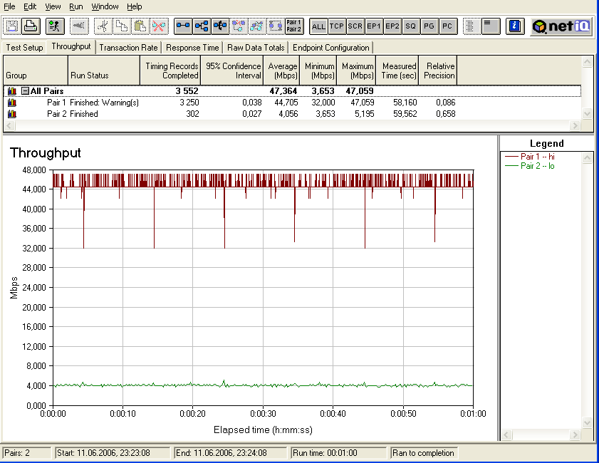 При последовательном запуске потоков трафика с различными приоритетами, распределение скоростей сразу изменяется в соответствии с заданными настройками.