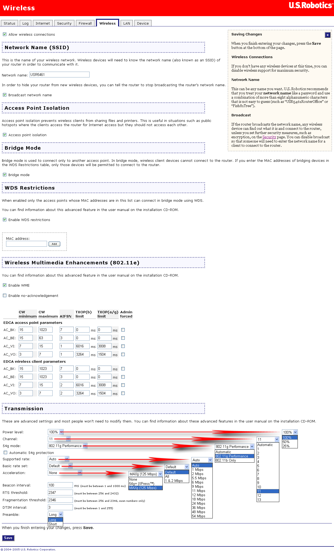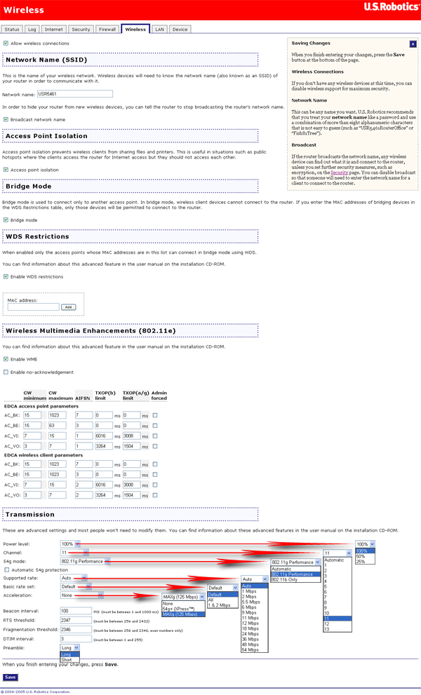 Расширенные режимы (54g+ и MAXg) позволяют повысить производительность беспроводной связи - они были вкратце описаны в одном из прошлых обзоров, который был посвящен беспроводному устройству U.S.Robotics USR5451.