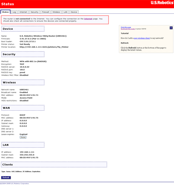 - AP — точка доступа на роутере U.S.Robotics USR5461