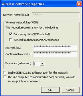 В каждом профайле задаются основные настройки беспроводной сети, такие как тип сети, ее скорость, SSID и настройки WEP шифрования.