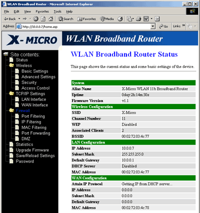 Беспроводное оборудование X-MICRO стандарта 802.11b обладает хорошей производительностью, а USB клиент вообще универсален и позволяет подключить любую машину с USB интерфейсом к беспроводной сети. Но вот их беспроводной LAN роутер обладает рядом промахов в реализации безопасности и встроенного файрвола. Ну, закрыть WEB интерфейс для доступа извне все-таки можно — для этого нужно настроить перенаправление 80го порта на какой-нибудь несуществующий адрес внутри локальной сети, а файрволом возможно многие и не будут пользоваться. К тому же, большинство вышеописанных багов можно исправить, возможно компания выпустит обновленную прошивку для роутера.