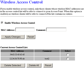 Следующие два экрана отвечают за настройку безопасности беспроводного сегмента — тут настраивается WEP шифрование и фильтрация MAC адресов.