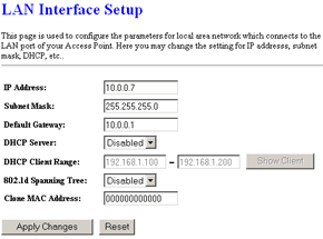 Раздел «TCP/IP Settings» отвечают за настройку TCP/IP адресации на LAN и WAN интерфейсах и встроенный DHCP сервер. Тут же можно включить поддержку не слишком нужного для SOHO роутеров протокола 802.1d Spanning Tree для LAN интерфейсов.