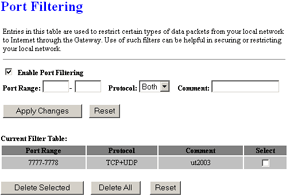 В следующем подразделе «TCP/IP Settings» задаются правила для фильтрации MAC адресов на LAN интерфейсах, их настройка аналогично выше написанному. Далее настраивается перенаправления портов (организация виртуальных хостов) и хост DMZ. Кстати, к каждому созданному правилу можно задать комментарий, что несомненно удобно.