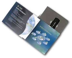 Оба устройства поставляются в оригинальной упаковке — она представляет собой коробку размером с компакт-диск и толщиной чуть меньше полутора сантиметров. Коробка имеет откидывающуюся крышку, в которую вложен диск и документация, а основной объем занимает полость со вложенным паралоном, в котором и находится само устройство, а с наружной стороны коробки сделано прозрачное окошко, в котором можно видеть это самое устройство. Другими словами, упаковка выглядит красиво, занимает мало места и довольно удобна.