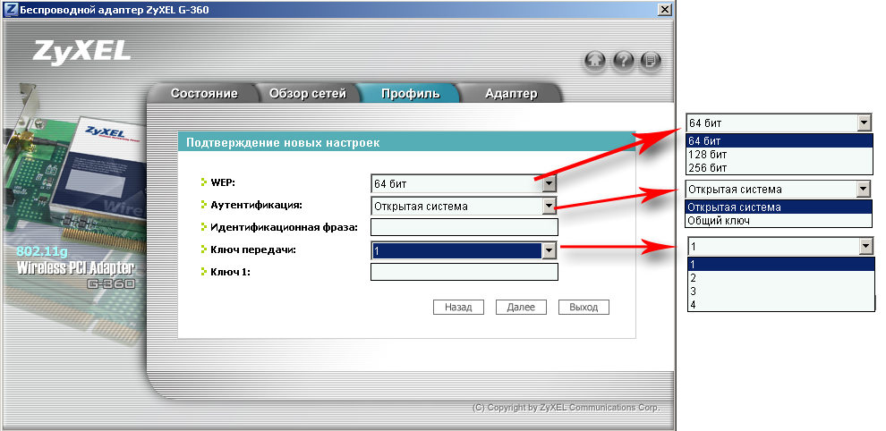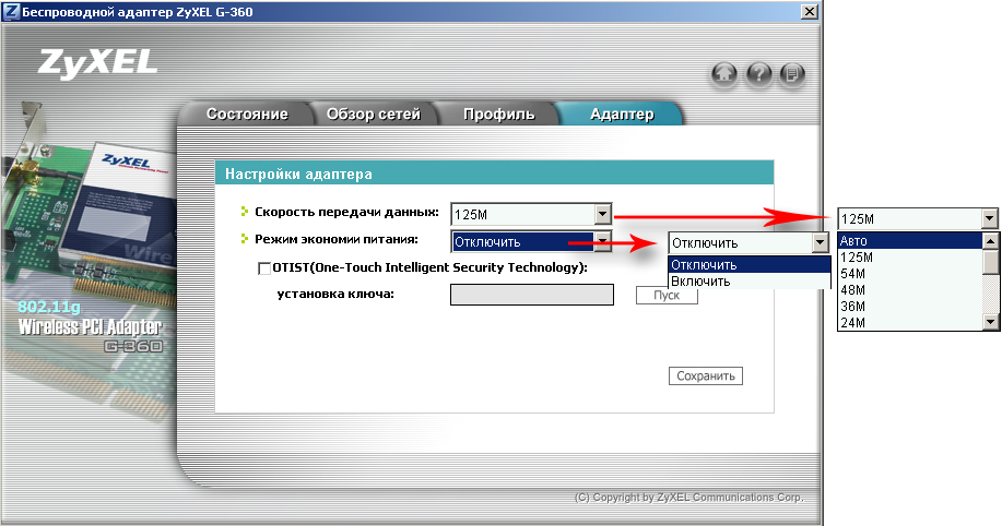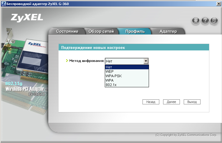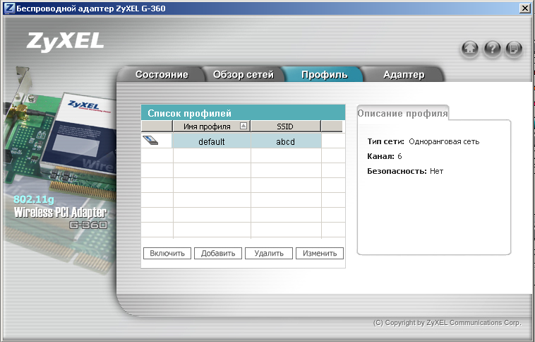 - PCI — беспроводной адаптер ZyXEL G-360