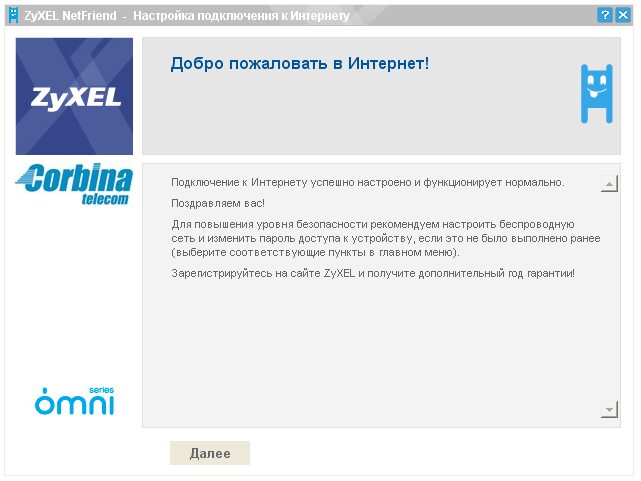 - Часть 2: тестирование производительности и безопасности интернет-центра, подключение к московскому провайдеру Corbina Telecom посредством утилиты ZyXEL NetFriend