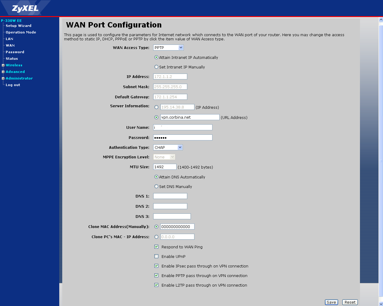 Во время написания обзора прошивка устройства в очередной раз обновилась. Тестирование проводилось уже с обновленной прошивкой версии P-330W_EE_V1.7_b6 (в данной версии были обновлены ошибки связанные с установлением PPP-соединений).