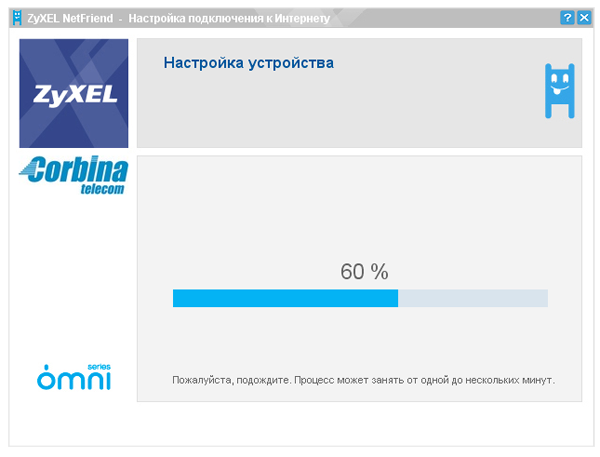 Что касается настройки с помощью утилиты NetFriend, то весь процесс занимает примерно 5–10 минут. Связано это с тем, что помимо приведенных выше скриншотов утилита некоторое время тратит на поиск интернет-центра, получение доступа к нему проверку "подключен кабель или нет" проверку доступа к сети Интернет и т.п. Каждая проверка занимает от нескольких секунд до 1 минуты времени.
