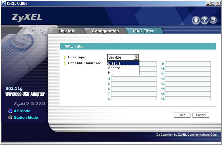 - Card — беспроводной USB-адаптер ZyXEL ZyAIR G-220