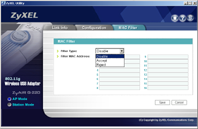 Настроек у точки доступа достаточно мало: здесь производится установка широковещательного SSID, номера канала, длину ключа шифрования и MAC-адресов, которым предоставляется или блокируется доступ к точке доступа. Отсутствует возможность вручную задать скорость соединения.