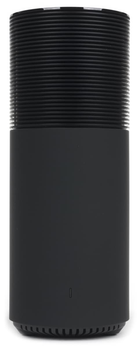 Роутер имеет необычный дизайн, что хорошо видно по фотографиям. Изготовленный из черного матового пластика корпус предполагает только вертикальную установку. Размеры устройства составляют 64×120×170 мм.