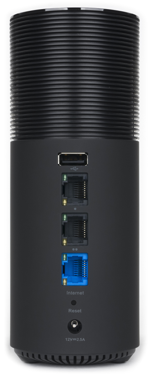 Сзади пользователь найдет порт USB 2.0, два порта LAN и порт WAN (гигабитные, с индикаторами), скрытую кнопку сброса и вход блока питания.