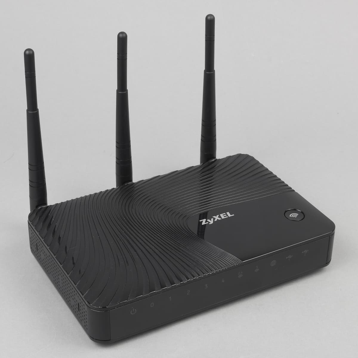 Верхняя крышка имеет необычный «волнистый» рисунок, который будет отлично собирать пыль. А вот за размещение на ней кнопки WPS стоит сказать отдельное спасибо. Она будет легко доступна в большинстве вариантов установки и позволит быстро и удобно подключать беспроводных клиентов, особенно если вспомнить, что с настройками по умолчанию беспроводные сети уже имеют защиту. Вторая ее функция — оперативное отключение беспроводных интерфейсов.
