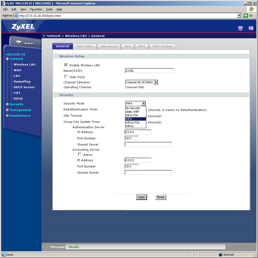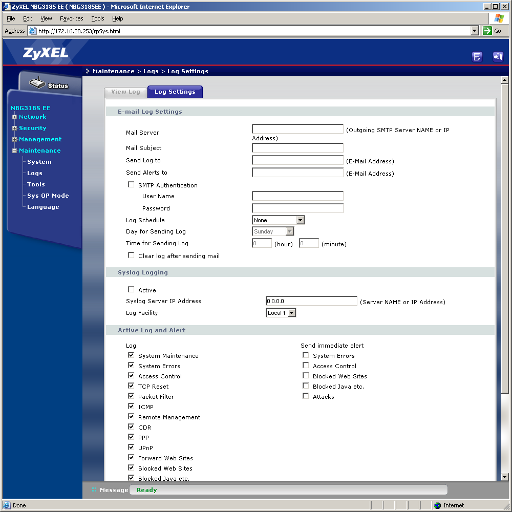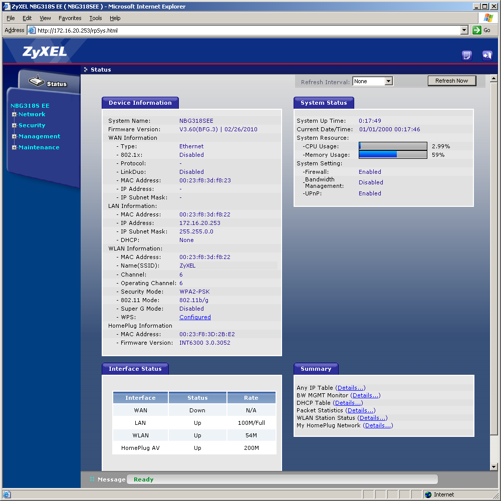 Собственно страницы с настройками организованы в четыре группы: «Network», «Security», «Management» и «Maintenance».