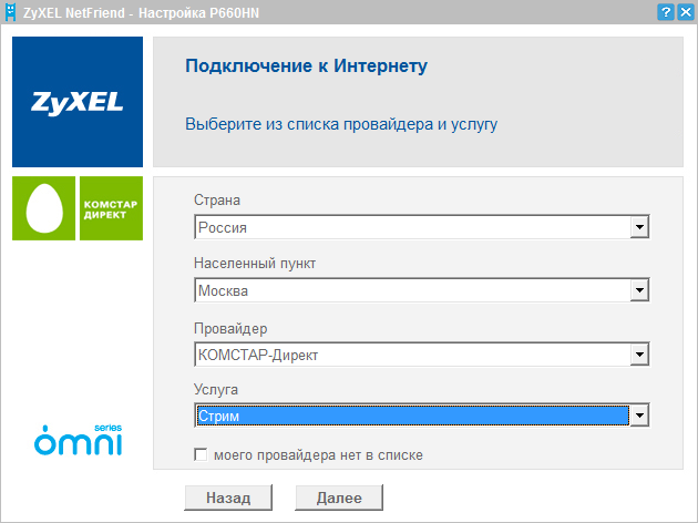 Однако это вполне компенсируется простотой — нужно только выбрать провайдера из меню, указать имя пользователя и пароль и буквально через пару минут интернет-доступ будет настроен. Также ее можно использовать для настройки IPTV, изменения параметров беспроводной сети и некоторых других операций.