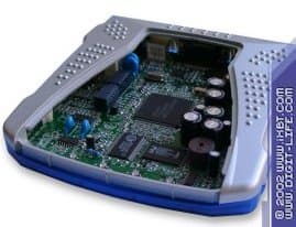 И, конечно же, нельзя не оценить работу дизайнеров компании: до недавнего времени производители модемов особенно не баловали нас изысками в этом направлении. Первое, что приходит в голову при взгляде на новые модемы — ну просто вылитый плеер для проигрывания компакт-дисков! К тому же, размеры модемов по ширине и глубине очень близки к размеру обычного футляра для CD. В этом есть и свой плюс: в отличие от старых моделей, увеличенные размеры по глубине не позволяют модему опрокидываться "на спину" из-за веса подключенных к задней панели шнуров. Как и в предыдущих модемах этой серии, индикаторов режима работы всего четыре — "MR", "DATA", "OH", "HS", причем в модели DUO один из индикаторов выделен для сигнализации о подключении к USB. Небольшие резиновые ножки обеспечивают хорошую устойчивость модема при эксплуатации.