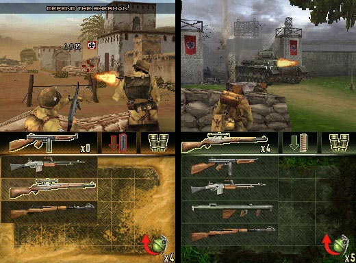 Отдохнуть же от бренной плоти поможет техника. Увы, поездить с ветерком удастся не на каждом уровне. Редкие танковые променады да заезды на джипах разделены двумя-тремя миссиями, проведёнными на своих двоих. Зато внутри многотонного монстра масштабы игры сразу меняются. Карательные рейды и уничтожение бункеров становятся секундными задачами. Вот только прочувствовать всю мощь выданного орудия у игрока не выйдет, поскольку все машины походят на картонные коробки, по какому-то недоразумению умеющие стрелять. Оттого поездки по агонизирующим телам врагов выглядят далеко не так динамично, как могли бы. Да и видов техники совсем немного: два союзнических танка, один джип да нагло сворованная у немцев «Пантера». Миссия перевыполнимаСамым ярым воякам, как водится, положены особые награды. Уничтожили десяток врагов с помощью гранат? Подорвали полдюжины танков? Заветная медаль ждёт вас. Правда, удовольствие от обладания ею – штука чрезвычайно сомнительная. Рейтинг этот ни на что не влияет и введён в игру разве что из уважения к усилиям игрока. Потому любителям разнообразных бонусов придётся затянуть кушаки потуже. Весь набор секретов в игре – два бесполезных вида оружия и новый танк союзников. А для получения их нужно сделать «невозможное» - пройти всю кампанию на первом уровне сложности. Подобный подвиг – дело одного свободного вечера. Большое количество укрытий, крупные союзнические подкрепления и железное здоровье героя – верные гаранты победы. На нормальном уровне сложности у врага фактически нет никаких шансов. Оттого на поле брани царит сплошной гротеск: весёлые пробежки под градом пуль заканчиваются в худшем случае лёгким испугом. На «ветеране» играть становится чуть сложнее, а вот «Элита» - это выбор настоящего бойца. Ему-то и были пропеты все былые дифирамбы. Укрытия обретают свой изначальный смысл: прятать от пуль хрупкое тело бойца. Два прямых попадания могут запросто вышибить из героя весь его звёзднополосатый дух. Боец одноразового пользования