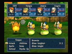 Погоня за взбесившимся хохмачом, изъятие ценнейшего предмета старины и искусства требуют квалифицированных преследователей, как минимум не уступающих главгаду в силе и магии. Один в поле воин обзаводится полноценной командой из четырех бойцов и тыловой группой поддержки в лице трудолюбивого короля. Знакомство с каждым новым членом коллектива всегда начинается с небольшого скандала, затем по сюжету происходит короткий обряд инициации, во время которого новичок убеждается в необходимости и плодотворности дальнейшего сотрудничества. Не успели отъехать от проклятого замка - как единственный мост уже захватил предприимчивый, но незадачливый разбойник. Янгус (Yangus) любит людей и еще больше - их плохо лежащее имущество. Встреча с этим «гуманистом» не сулит ничего хорошего добропорядочному гражданину или вредному монстру. Его присутствие на поле боя в нашей команде - это всегда надежное плечо, брюхо и нога настоящего воина, лишенного всяких магических глупостей. Дубины, молотки, топоры куда убедительнее в любом споре вместо доброго слова, а ловкие пальцы быстро обшарят ошеломленного противника на предмет лишней наличности.