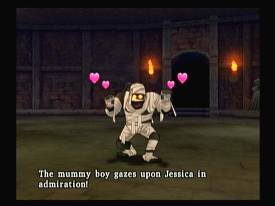 Следующая героиня - Джессика (Jessica) - всегда готова устроить скандал на ровном месте. То красная бандана главного героя не стильная, то боевые способности у нас низкие, то просто плохая погода. Любовь с первого взгляда для многих монстров и противников, страсть, сексуальность, перманентная истеричность и огромный магический потенциал, вместе с личной ненавистью к Долмагусу создают воистину взрывоопасную для окружающих смесь. Острые кинжалы и кожаные хлысты позволяют ей до поры до времени не использовать самые разрушительные из заклинаний, а природная привлекательность удерживает многих противников от причинения боли красавице.