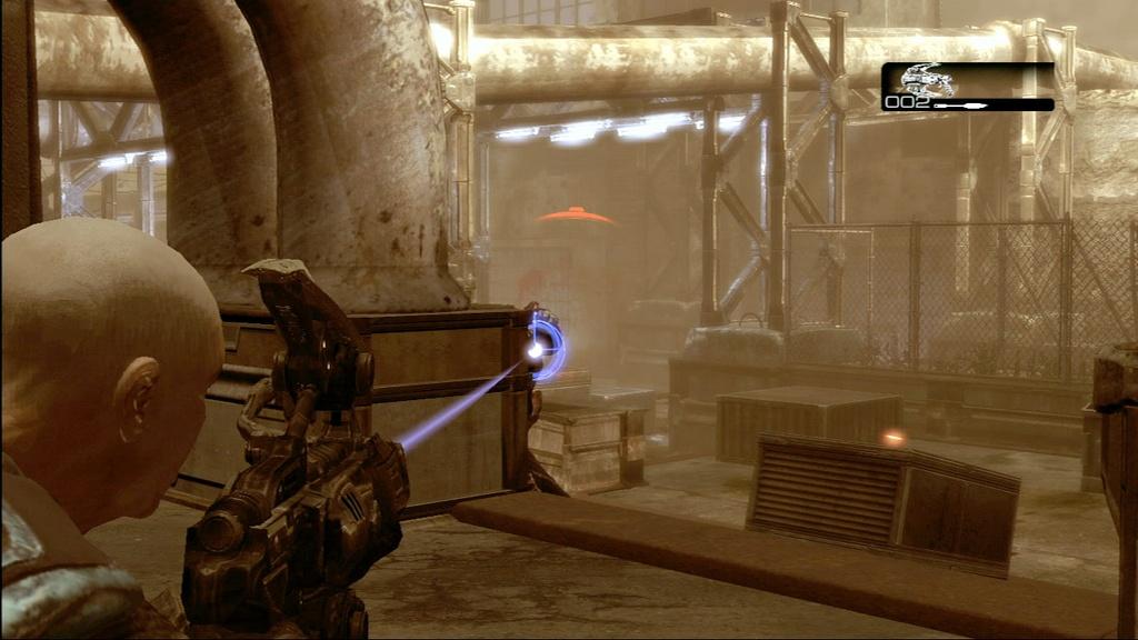 Сюжет развивается своеобразно. Игра не дает никаких пояснений о судьбе этого мира, о причинах противостояния. Она ограничивается демонстрацией последствий с упоминанием Дня Вторжения (Emergence Day). Дня, когда неведомые твари полезли из недр земных и чуть было не захватили этот мир. Новоявленных врагов окрестили саранчой и даже попытались с ними бороться, но все оказалось бесполезно. Наконец человечество предприняло суицидальную попытку спасения и орбитальными ударами уничтожило всех монстров на поверхности, заодно разрушив собственные города. С тех пор установилось хрупкое равновесие. Спутники с орбиты не дают саранче выползти на поверхность, а сама саранча своими вылазками пытается уничтожить останки людского рода. Патовое положение, которое может продлиться столетиями. Война на истощение. И, конечно же, нашему герою предстоит сдвинуть дело с мертвой точки и преломить ситуацию. Gears of War не раскрывает все свои секреты, не распространяется о прошлом Маркуса (потомок великого рода?), его боевых заслугах (герой войны?). Едва обрисовывает ситуацию, оставляя место фантазии и предположениям. И не боится задавать вопросы. Особенно под конец, когда подвешивается приманка на следующую часть (Кто, черт побери, эта женщина? Почему она говорит за саранчу? На чьей стороне, в конце концов, правда?!). Тут больше всего напрашивается аналогия с Half-Life 2 - нас просто ставят перед фактом. А за объяснениями добро пожаловать в следующую часть. и стены помогаютGears of War принадлежит к жанру «нео-шутеров» или шутеров «новой волны». Зачатки его посадил kill.switch уже давно, но взошли они буйным цветом с появлением Xbox 360, выдавая один хит за другим. Они доказали свою жизнеспособность и обещают вскоре вообще вытеснить с консолей классические шутеры от первого лица (по популярности - уже вытеснили).