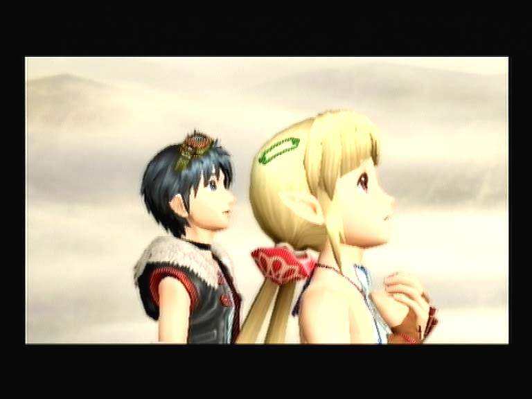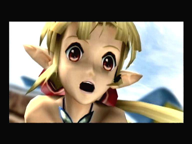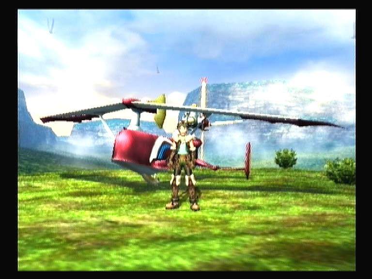 Извилистые коридоры уровней оригинальными решениями нас не побалуют. Если есть лестница – значит, по ней можно куда-то залезть, узкий пролом между двумя платформами - перепрыгнуть. Заваленный проход - взорвать, специально выращенной для этой цели миной. Добавьте двадцать схваток с противниками и посмотрите после прохождения локации на свое утомленное лицо. Сразу оцените «гениальность» дизайнеров и скорость игры. Обманывать игрока якобы трехмерной картинкой в JRPG стали давно. Заранее отрисованные (отрендеренные) локации и детализованные куклы персонажей стали своеобразным компромиссом в серии генетических экспериментов по скрещиванию 2D и 3D. Следующий этап включал в себя свободно перемещающуюся камеру и настоящих полигональных монстров на боевых аренах. Двухмерную Grandia наконец-то тоже почти полностью завернули в популярную упаковку. Получилось это топорно и неаккуратно, с огромным количеством спрайтов, выпирающих на глаза совсем в ненужных местах. Океан, солнышко, неплохого разрешения обои-текстуры на стенах, динамичная тень (только от нашего персонажа)… В общем, это была хорошая новость. Плохую вы и сами разглядите: деревья с крестообразно растущими ветками и зеленой мешаниной вместо листьев. Двумерные спецэффекты от заклинаний и комбо, спрятавшиеся среди единичных трехмерных братьев. Слабая детализация персонажей заставляет бедняг скромно прятать плоские лица от камеры, а под зов режиссера радостно вылезать на крупный план в CG роликах.