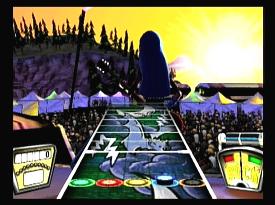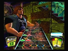 Мелодия «заряжена», солист готов надрываться у микрофона, барабанщик азартно жонглирует палочками - пора взять первую ноту и порадовать зрителей искрометным шоу. Дорога музыки в Guitar Hero проходит по грифу любимого инструмента. В нужный момент нажимаем на один из шифтов джойпада, отвечающих за соответствующую струну, быстро перебираем пальцами еще две кнопки, возвращаемся к первому - и в спокойное течение мелодии вплетутся яркие и резкие гитарные рифы, а зал удовлетворенно взвоет. Процедура, конечно, схематическая и не совсем удобная. Ровно до той поры, пока к PS2 не будет подсоединен специально разработанный гитарообразный контроллер с логотипом Guitar Hero. Никакой джойпад по удобству не сравнится с болтающимся на шее подобием музыкального инструмента.