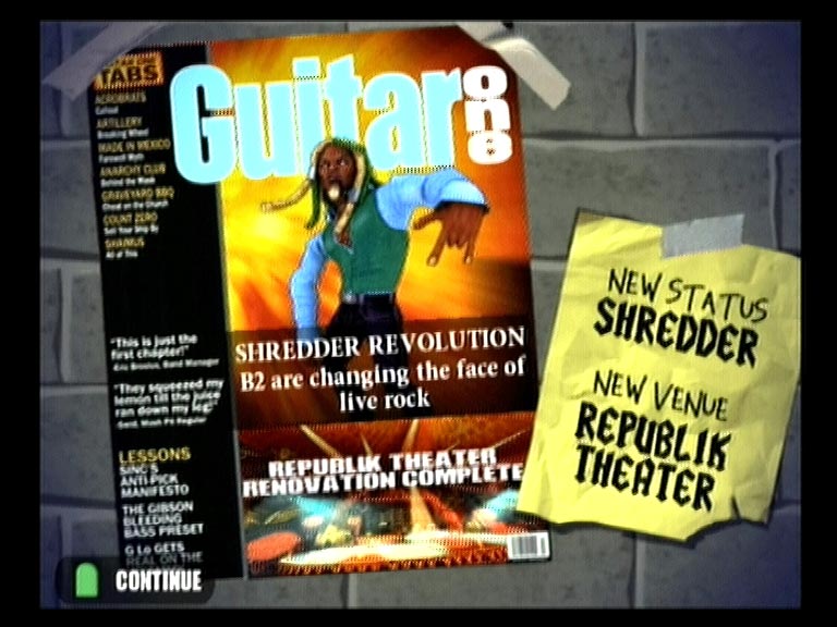 После состоявшегося выступления игрок обнаружит свое имя в заголовке Daily Dose, где приводится статистика ошибок и удачных моментов, а также репортерами этой музыкальной газеты дается общая оценка работы бас-гитариста. Следом по почте придет чек на унизительно малую для нашего таланта сумму. Но возмущаться бессмысленно, так как все очень толково обосновано в прилагаемой диаграмме доходов и расходов. Хороший продюсер и эффективная реклама стоят очень дорого. Заработанные в шоу-бизнесе тяжким трудом, потом и кровью, деньги рекомендуется тратить не на выпивку и наркотики, а на собственное совершенствование и обучение. Новая стильная гитара, облегчающая нагрузку на пальцы, или перекрашенная в модные тона старая, уникальные новые композиции для исполнения, видеоролики и новые персонажи - все это стоит приличных сумм с тремя-четырьмя нолями, которые не каждый исполнитель заработает с одного-двух концертов.