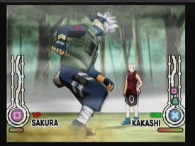 В драке все средства хороши, а у синоби свои правила боя, завязанные на использовании силы чакр (chakra). В рукопашной схватке руками-ногами машут, как будто под бдительным оком сэнсэя основы тайдзюцу (taijutsu) сдают. Спецприемы и контратаки на весь экран выводят. Прыгают выше спортсменов с шестами. Прицельно швыряются острыми и тупыми предметами. Исчезают средь бела дня. По воде аки посуху бегают. На вертикальные стены и деревья без лишнего разгона забираются. Впечатляет? Это цветочки. Ребятня и взрослые легко насылают иллюзии и применяют секретные боевые техники ниндзюцу. Кое-кто балуется ужасными проклятыми приемами или напрямую обращается к одной из стихийных сил. Игроку только и нужно - нажать кнопку, чтобы открылись каналы чакр, и пнуть пробегающего мимо противника. Дальше очертания арены уплывут в небытие, а игроки отправятся барабанить по кнопкам геймпада, согласно предлагаемой на экране инструкции. Все правильно и быстрее соперника? Увидите шикарный ролик, где полностью изображается действие одного из многих уникальных приемов.
