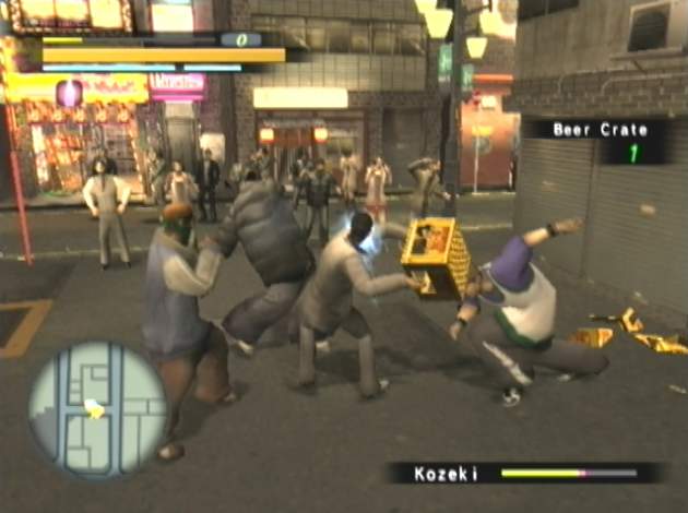 И никакой «честной» трехмерности. Все нарисовано заранее, даже на лица виртуальных болванчиков расклеены листовки текстур. Если работа дизайнеров вызывает искреннее восхищение простотой и изяществом выбранных средств, то за количество полигонов и качество текстур впору не пару пальцев отрезать, а отхватить руки по локоть. Швы между объектами, размытая, едва узнаваемая gif анимация, - только главным героям повезло с детализацией и минимальным набором мимики, остальных же персонажей нам показывают на спасительном и щадящем наши зрительные нервы расстоянии. Жесткие гитарные рифы заряжают игроков энергией перед каждой схваткой. Десяток мелодий весьма напоминает треки из серии Tekken. Жаль, что в игре размещено совсем мало музыкального контента. А вот американским актерам, переозвучившим Yakuza для западного рынка, хочется сказать честное станиславское «верю!». Они выполнили тяжелую задачу - перенесли заложенные в японские характеры эмоции во всей их глубине на понятный язык американцев и европейцев. После такого приятного впечатления простительны огрехи звукозаписи, когда иногда не совпадают реплики с движением губ виртуальных кукол. DiagnosisЖесткий боевик с неожиданным щемящим эмоциональным содержимым. Увлекательный сюжет с модным японским колоритом никак не тянет на клише «еще один клон GTA». Здесь нет преступлений ради удовольствий или дешевого позерства - все действия строго целесообразны, а портрет героя - невероятно притягателен и харизматичен. Фактически, мы примеряем на себя один из костюмов Такеши Китано, наносим на лицо грим и шрамы, криво улыбаемся этому отвратительному лживому миру и шаг за шагом, удар за ударом, вершим собственное правосудие. До скорого сиквела?! Pro: