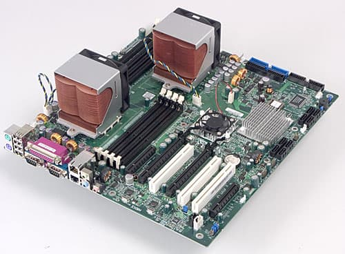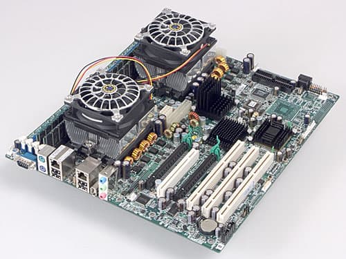Кроме того, мы считаем нужным отметить чрезвычайно высокий нагрев обеих микросхем чипсета nForce Professional на данной плате. После прикосновения пальцем к радиаторам микросхем, продержать его в таком состоянии более секунды было невозможно из-за боязни ожога. С этой точки зрения разумным выглядит подход Supermicro, которая снабдила одну из микросхем активным охлаждением, а вторую — радиатором намного большего, чем у Tyan, размера. Однако в любом случае совершенно очевидна необходимость установки обеих плат в корпус, снабжённый достаточно мощным корпусным вентилятором (а для Tyan, наверное, лучше сразу двумя).