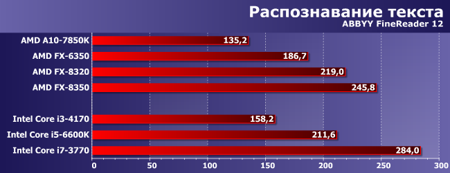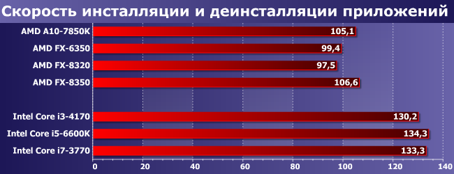 Приложения такого типа (активно загружающие все ядра процессора, которые найдут) — лучшая сфера применения для многопоточных процессоров, однако архитектурные особенности тоже имеют место быть, так что разница между старым Core i7 и новым Core i5 сократилась уже всего до 10%, а второй сумел даже опередить один из четырехмодульных FX (не самый, кстати, медленный). А интереснее всего выглядит в таких условиях FX-6350: у Intel слишком велика разница между i3 и i5, но вот подход AMD позволяет сделать ассортимент процессоров более «плотным». Впрочем, началось это не вчера — трехъядерные процессоры появились еще во времена первых Phenom. Основной их недостаток — используются те же кристаллы, что и для четырехъядерных, так что и себестоимость аналогичная. Но вот конкретные розничные цены могут сильно различаться, что дает покупателю дополнительную свободу выбора.