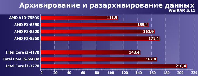 Распараллелить упаковку удалось достаточно давно, обратная операция пока этому не поддалась, но общий итог все равно неплохой. Слабым местом модульной архитектуры AMD по-прежнему остается кэш-память третьего уровня: с ним лучше, чем без него, но вот асинхронный режим работы на невысокой тактовой частоте ограничивает производительность.