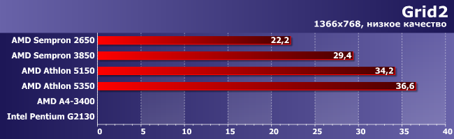 Удается это даже Sempron 3850, не говоря уже о более быстрых моделях, только хорошо видно, что практической пользы от этого нет: даже младшего А4 недостаточно и на столь легкий режим, а он заметно быстрее всех процессоров для АМ1.