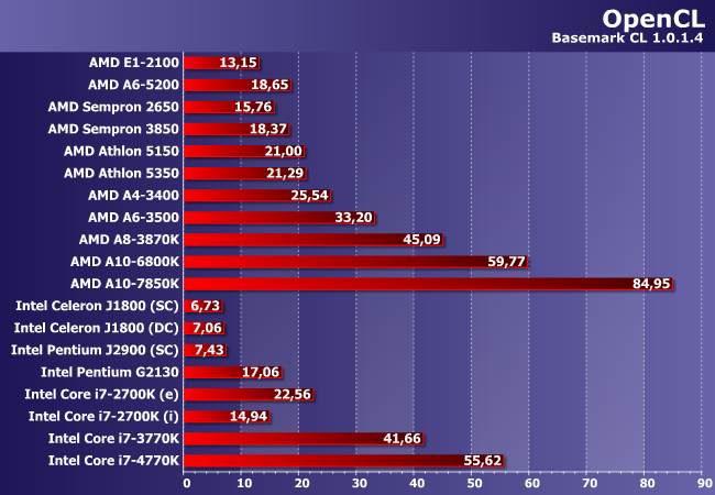 Заметим, что и гетерогенные вычисления «спасти» Kabini не могут — разве что на фоне Bay Trail-D эти процессоры могут начать выглядеть более убедительно, но не более того. Небольшое превосходство над Pentium с учетом разгрома в «традиционных» приложениях ничего не даст, а А4-3400 справляется с OpenCL-кодом лучше.