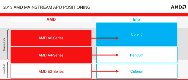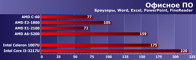 Опять же — прогресс заметен, правда конкурентов догнать ни удалось: ни формального (коим AMD считает Core i3), ни реального (мы все более склоняемся к мысли, что таковыми являются в большей степени Celeron или Pentium как максимум). Но разница с последними будет в большинстве случаев малозаметной, в отличие от Brazos, работать на котором можно было лишь в виде наказания :)