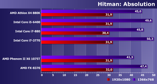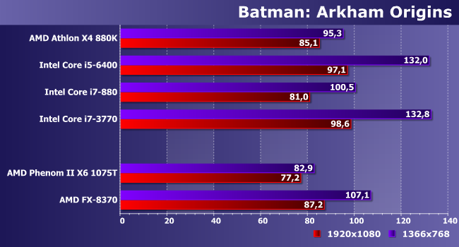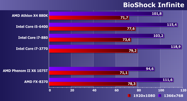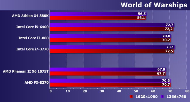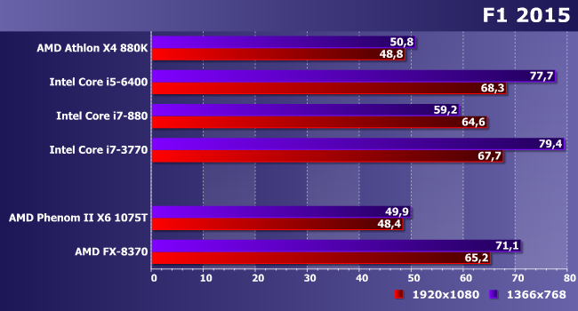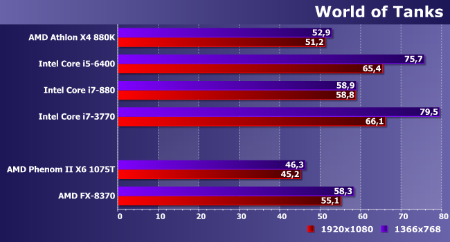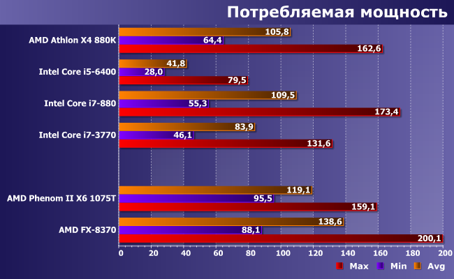 | Процессор | AMD Athlon X4 880K | Intel Core i5-6400 | Intel Core i7-880 | Intel Core i7-3770 |
