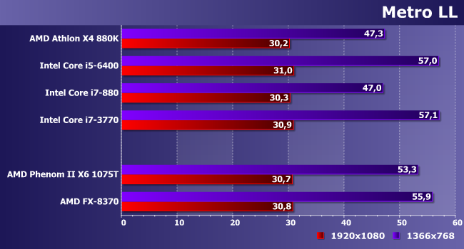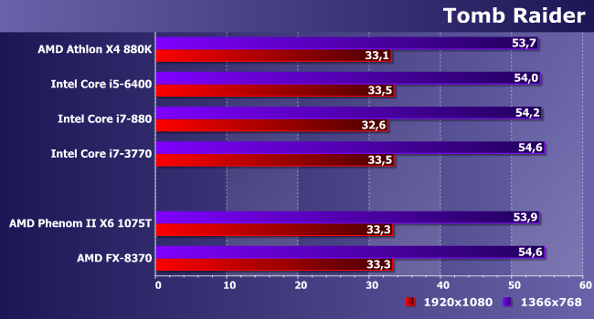 А здесь все примерно одинаковы — различия есть только в режиме со сниженным разрешением. И, что забавно, они скорее в пользу АМ3+, чем наоборот.