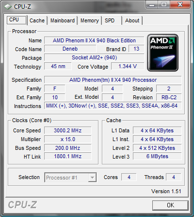 | Процессор | Phenom II X4 940 (1 core*) | Phenom II X4 940 (2 core*) | Phenom II X4 940 (3 core*) | Phenom II X4 940 (4 core*) |