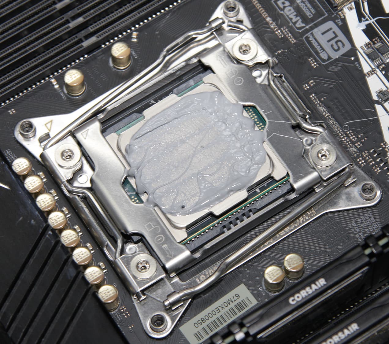 Забегая вперед, продемонстрируем распределение термопасты после завершения всех тестов. На процессоре: