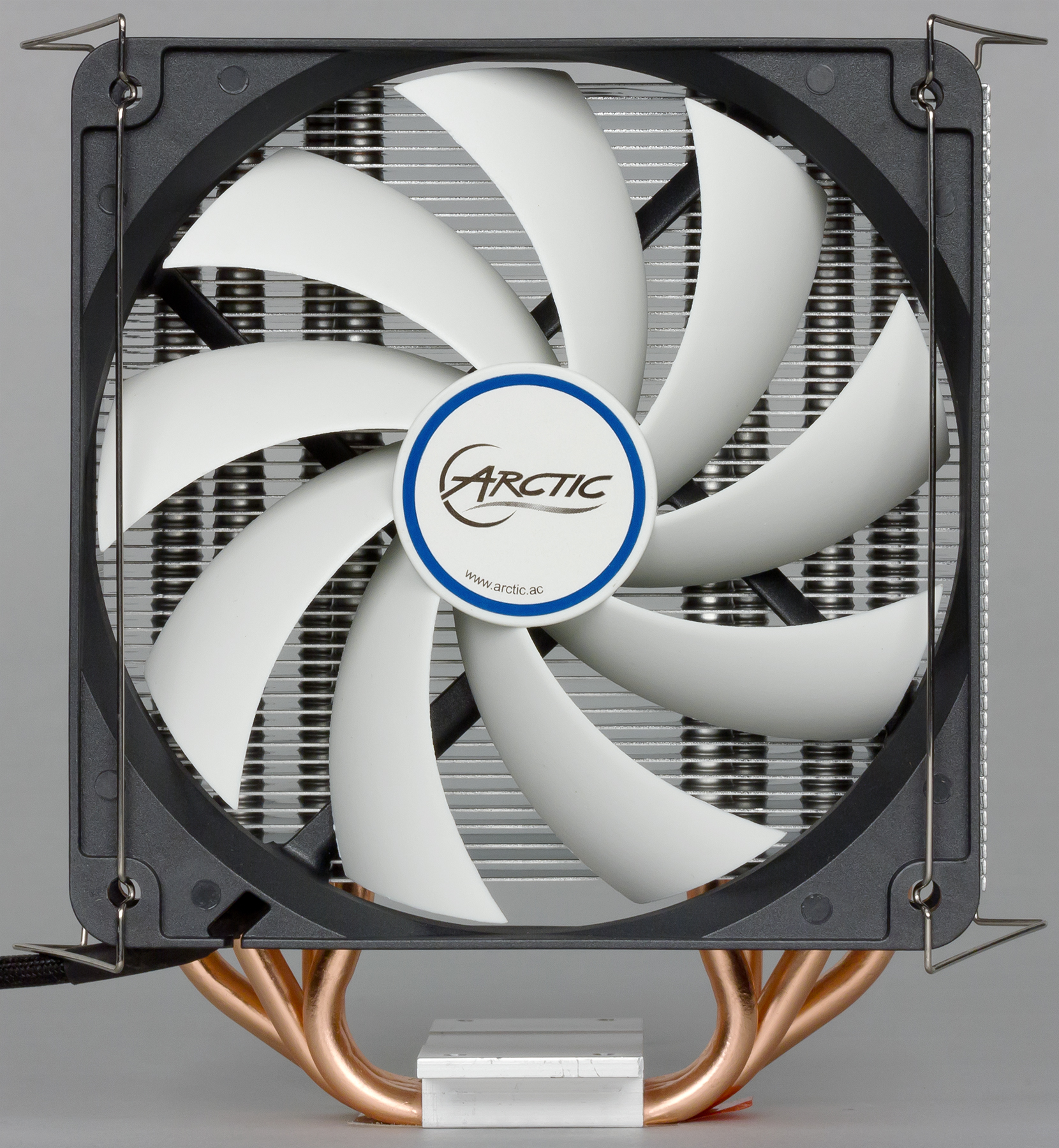 Кулер оснащен вынесенным радиатором, к которому тепло от подошвы передается по четырем тепловым трубкам. Трубки, разумеется, медные. У подошвы теплосъемника трубки сплющены и впрессованы в толстую алюминиевую пластину, снаружи анодированную. Прилегающие к процессору плоскости трубок сошлифованы, но не отполированы. На подошве теплосъемника между трубками есть выраженные канавки. До установки подошва защищена пластиковой пленкой.