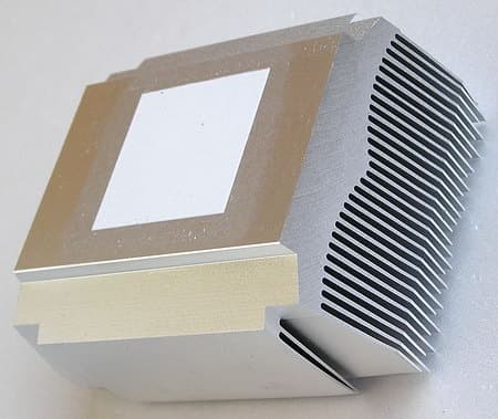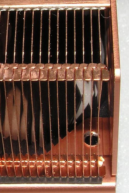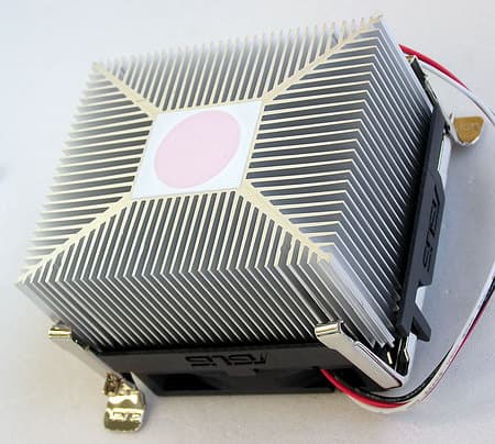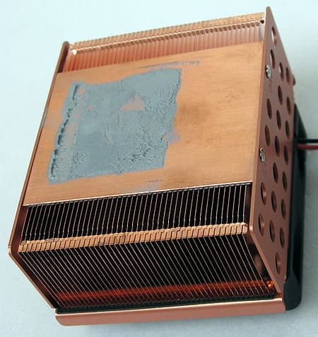 Радиатор кулера ASUS Neptune P4 MH7 с медной сердцевиной (проглядывает сквозь термопасту).