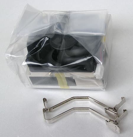 Впрочем, по одежке лишь встречают, но провожают-то по уму и «внутреннему содержанию». Хотя с последним у наших героев тоже все весьма скромно — сам кулер завернут в полиэтиленовый пакетик (для амортизации и прочих «предохранений»), к нему предлагаются «крепительные» клипсы. Слой термопасты нанесен на центральную часть основания кулера и для транспортировки прикрыт пластиковой крышечкой.