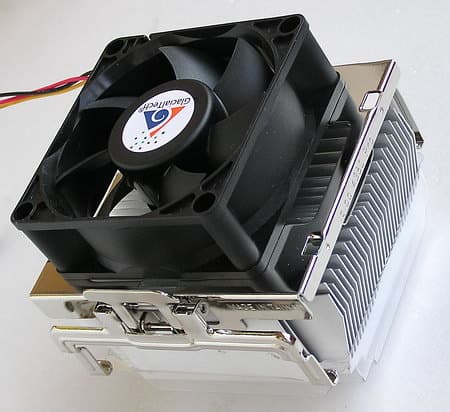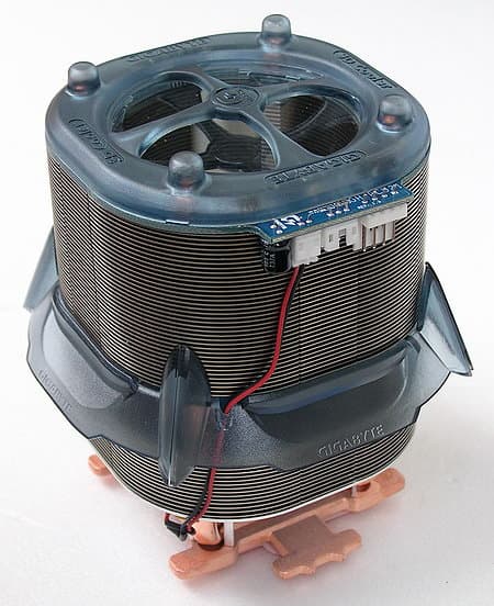 4. А также новенький «многостаночник» — свежий кулер от Gigabyte 3D Rocket-Pro Cooler GH-PCU22-VG, имеющий литое медное основание, соединенное тепловыми трубками с высоким радиатором, набранным из алюминиевых пластин.