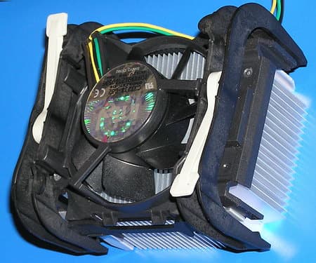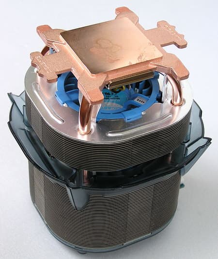 Ближе к низу радиатор имеет щель, прикрытую пластиковой «юбкой» — по замыслу разработчиков воздух из кулера должен обдувать и материнскую плату (например, импульсный стабилизатор питания процессора), что, в частности, необходимо для новых плат с разъемом LGA775.