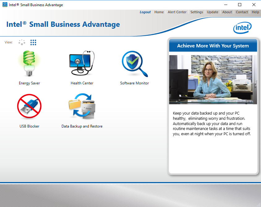 На рассматриваемом устройстве был установлен и пакет Intel Small Business Advantage, частично пересекающийся по возможностям с Asus Business Manager. Из-за отсутствия vPro наиболее интересные функции Intel SBA здесь недоступны, остаются только чисто программные решения. Energy Saver позволяет запрограммировать недельное расписание включения и выключения компьютера. В Health Center можно настроить регулярный запуск программ обслуживания системы и переадресацию системных сообщений на электронную почту. System Monitoring контролирует работу сервисов Windows Defender и Windows File History и также может сообщать о проблемах по email. USB Blocker поможет ограничить использование пользователями периферийных устройств с этим интерфейсом. Data Backup & Restore позволяет просмотреть статус работы встроенной в ОС системы резервного копирования.