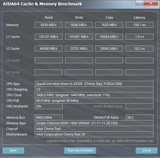 Объем оперативной памяти компьютера составляет 2 ГБ, как и указано как максимальное значение для данной SoC. Напомним, что некоторым производителям удается на подобных системах установить и больший объем. Режим работы памяти — DDR3-1600, однако тайминги немного отличаются от системы Intel, что приводит к заметной разнице в некоторых тестах.