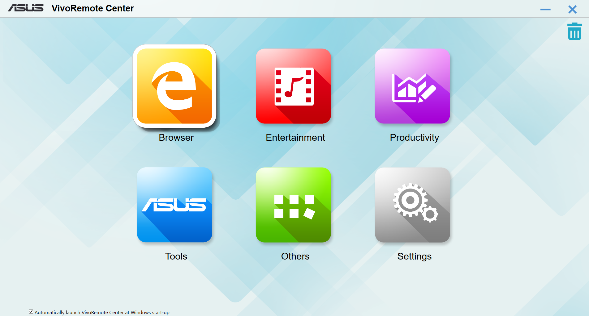 Неплохо выглядит VivoRemote Center, которая представляет собой оболочку для доступа к программам при работе с телевизором и может запускаться автоматически при старте компьютера. Состав групп пользователь может изменить самостоятельно, однако больше ничего программа не умеет. В частности при вызове настроек Wi-Fi или Bluetooth просто запускаются соответствующие модули операционной системы. Некоторый интерес может представлять управление программой с мобильных устройств через одноименное приложение. В нем реализованы функции мышки, клавиатуры и пульта дистанционного управления медиаплеером.