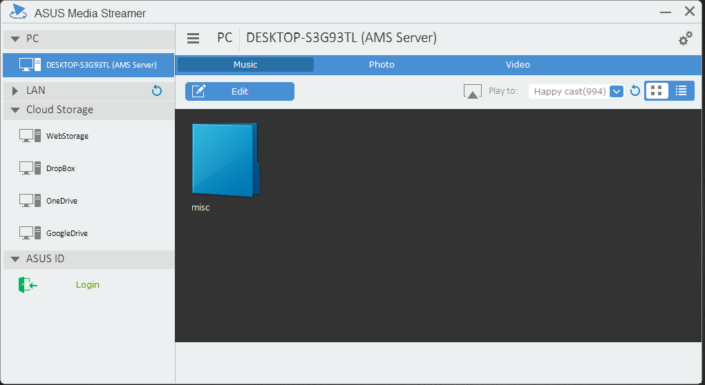 Еще один вариант трансляции медиа реализован в утилите Media Streamer. Она использует протокол DLNA для работы с серверами и плеерами в локальной сети, а также может брать контент с облачных хранилищ и других систем с установленной программой, где указан тот же аккаунт Asus.